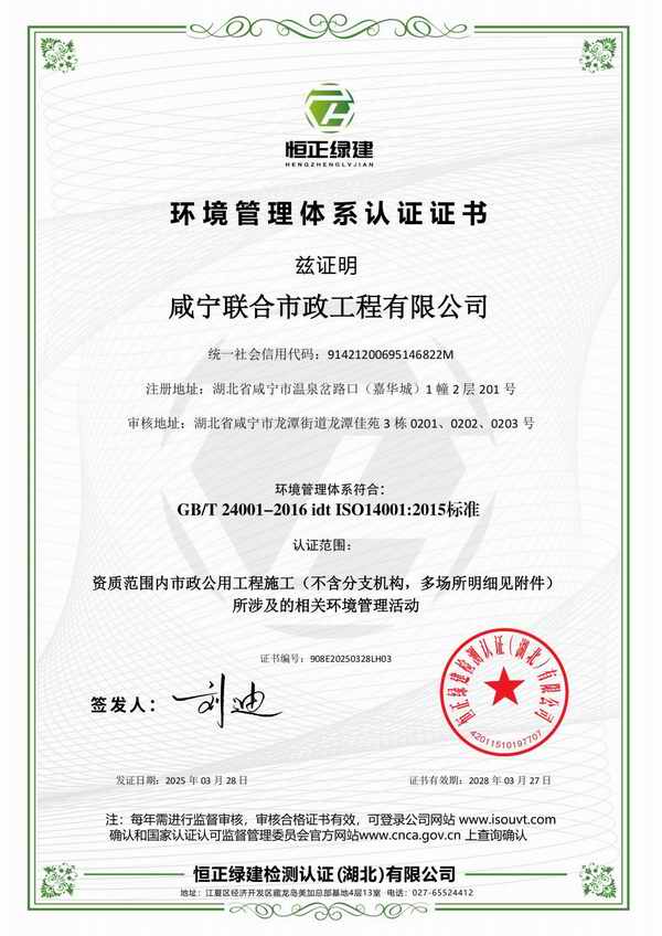 ISO三大體系認證是企業提升競爭力、提高信譽度和實現可持續發展的重要手段。咸寧聯合市政工程有限公司自2021年首次獲得ISO三大體系認證以來,一直秉持“供優質之水,服誠信之務”的服務理念,致力于提升公司的專業管理和綜合管理水平。此次再認證審核的順利通過,不僅是對公司過去努力的肯定,更是對公司未來發展的鞭策。