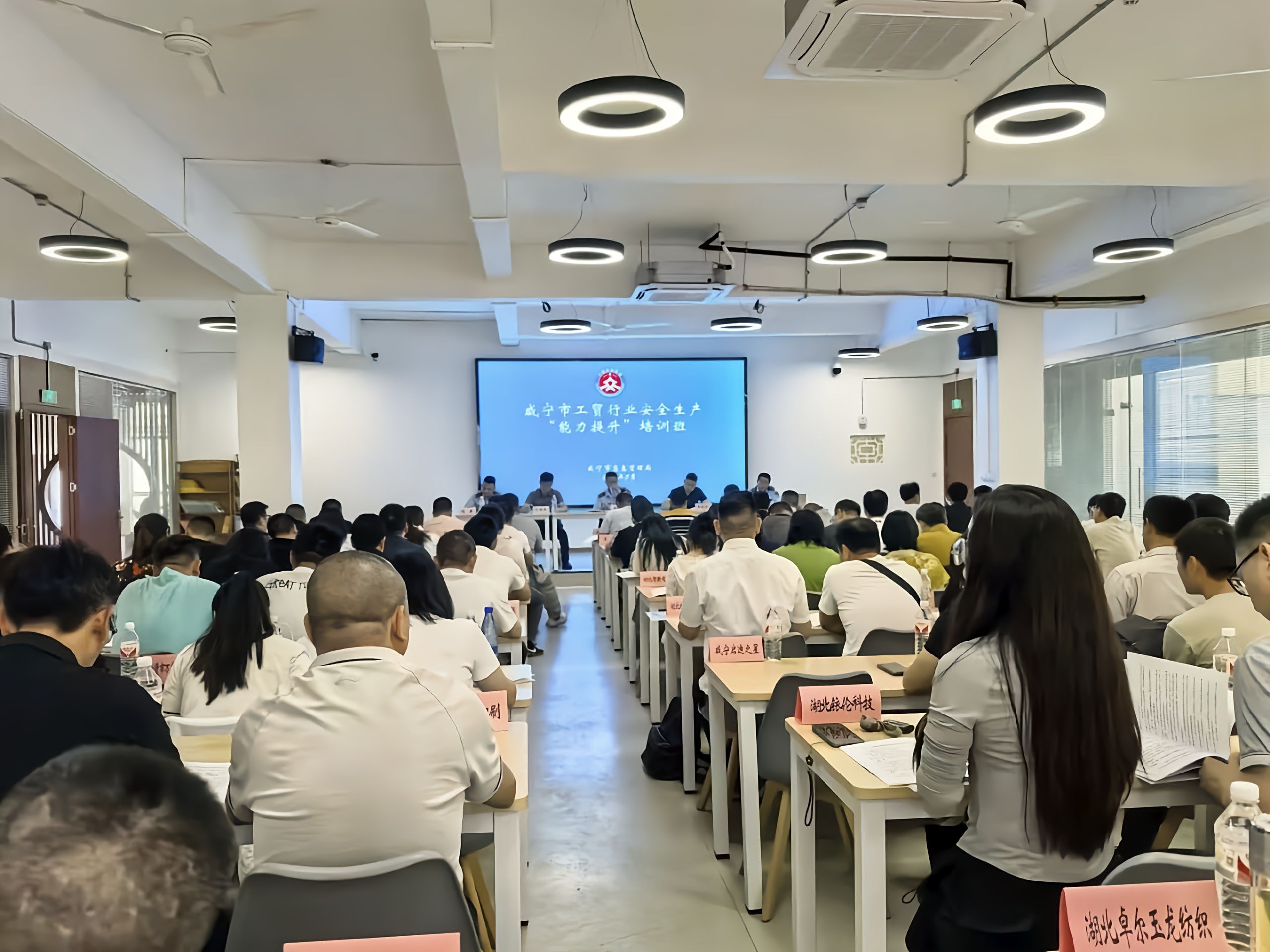 5月14日培訓聚焦政策解讀,參訓學員系統學習了工貿行業監管會議精神、重大事故隱患判定標準,并在培訓結束時參與閉卷考試,檢驗學習成果。咸寧聯合水務公司員工成績優異,作為優秀學員代表,上臺接受表彰,咸寧市應急管理局領導為其頒發證書。