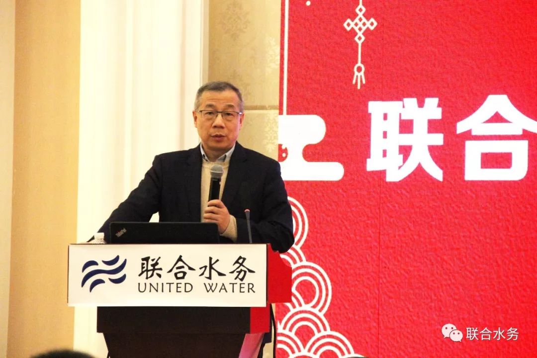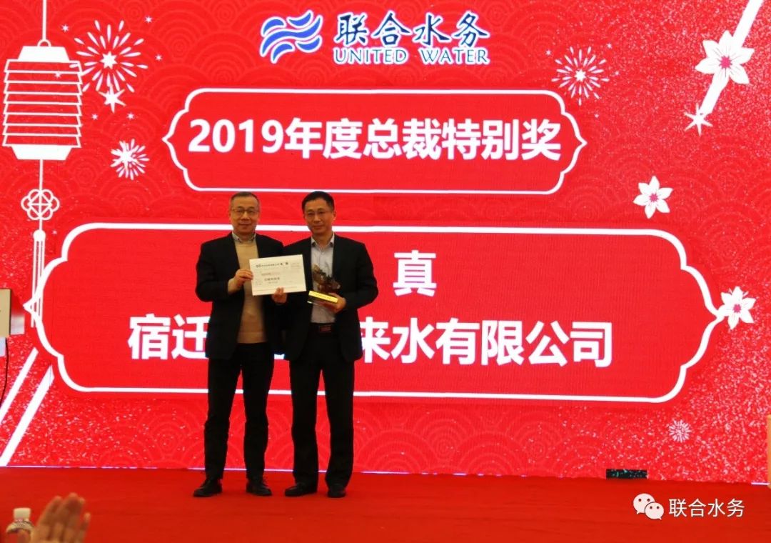 聯(lián)合水務(wù)集團(tuán)董事長(zhǎng)兼總裁俞偉景先生為“總裁特別獎(jiǎng)”獲得者曾真先生頒獎(jiǎng) 2019年是聯(lián)合水務(wù)集團(tuán)極不平凡的一年,各項(xiàng)業(yè)績(jī)突飛猛進(jìn),行業(yè)地位和社會(huì)影響日益突出。在總體經(jīng)濟(jì)形勢(shì)不利的大環(huán)境下,集團(tuán)公司各模塊、北方區(qū)、華中區(qū)、華南區(qū)、海外項(xiàng)目幾大區(qū)域的各項(xiàng)目公司擯除萬(wàn)難、勠力進(jìn)取,均取得了長(zhǎng)足的發(fā)展;集團(tuán)超額完成全年預(yù)算指標(biāo),發(fā)展勢(shì)頭強(qiáng)勁;吐故納新,事業(yè)版圖穩(wěn)步上升,新創(chuàng)建了三個(gè)優(yōu)質(zhì)的項(xiàng)目公司;業(yè)務(wù)領(lǐng)域有了質(zhì)的飛躍,邁出了跨越供水、污水傳統(tǒng)水務(wù)行業(yè)、進(jìn)入水環(huán)境治理全新領(lǐng)域的堅(jiān)實(shí)一步;孟加拉國(guó)首都達(dá)卡市Purbachal新城供水及配水設(shè)施開發(fā)PPP項(xiàng)目成功簽約并已開啟前期建設(shè),開拓海外市場(chǎng)、進(jìn)軍海外首戰(zhàn)告捷,一鳴驚人;上市各項(xiàng)工作穩(wěn)步有序推進(jìn),為明年成功上市打下了堅(jiān)實(shí)基礎(chǔ)。 會(huì)議最后,集團(tuán)董事長(zhǎng)兼總裁俞偉景先生發(fā)表總結(jié)講話。俞總裁首先肯定了一年來(lái)各區(qū)域、各項(xiàng)目公司的努力和所取得的業(yè)績(jī),感謝全體員工對(duì)集團(tuán)發(fā)展所做出的貢獻(xiàn),希望各項(xiàng)目公司再接再厲、不忘初心、砥礪前行。俞總帶大家回顧2018年年會(huì)所述三大任務(wù):全力增收、全面發(fā)展、A股上市,時(shí)隔兩年,俞總裁向大家亮出了驕人的成績(jī)單。2019年全集團(tuán)營(yíng)業(yè)收入、老舊賬款回收成果顯著;輕重結(jié)合,投資并購(gòu)新項(xiàng)目、進(jìn)入水環(huán)境治理新業(yè)務(wù)領(lǐng)域、開拓海外市場(chǎng),公司得到了全面快速發(fā)展;歷年的良好業(yè)績(jī),讓上市工作一路穩(wěn)步推進(jìn),已經(jīng)到了收官階段。全體員工以忠誠(chéng)、努力與執(zhí)行力助力集團(tuán)公司實(shí)現(xiàn)了一個(gè)又一個(gè)發(fā)展目標(biāo)。成績(jī)屬于過(guò)去的輝煌,面對(duì)未來(lái),更要正視不足,持續(xù)改進(jìn)。最后,俞總裁勉勵(lì)大家,2020年是決戰(zhàn)之年,上市不是終極目標(biāo),只是我們發(fā)展過(guò)程中的重要里程碑,只要我們始終踐行“團(tuán)結(jié)誠(chéng)信、拼搏共贏”的企業(yè)發(fā)展理念,我們就一定能實(shí)現(xiàn)我們使聯(lián)合水務(wù)成為一家GREAT(偉大的)水務(wù)公司的夢(mèng)想!