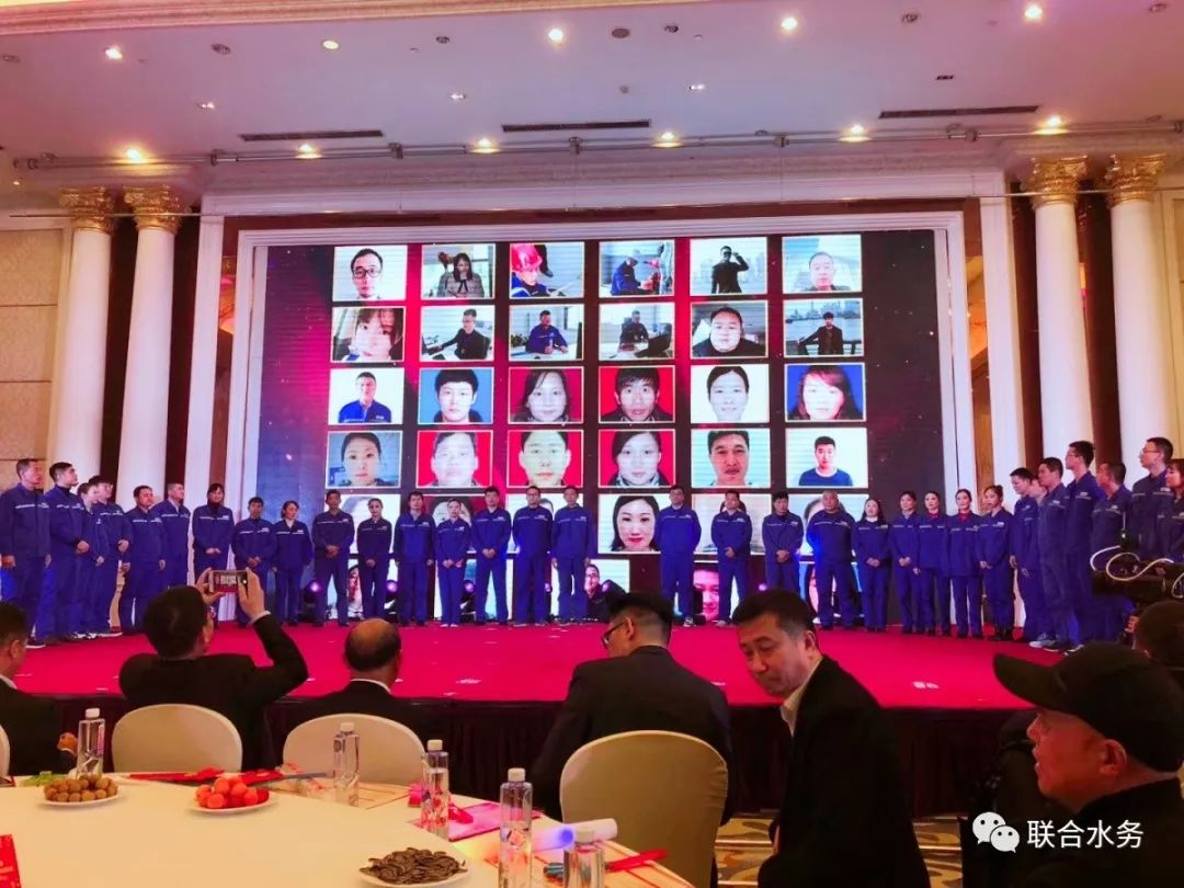 聯(lián)合水務(wù)集團(tuán)董事長(zhǎng)兼總裁俞偉景先生致新春賀辭 俞總的致辭情真意切,振奮人心,另一個(gè)提振士氣的時(shí)刻又將到來(lái)。2019年,全集團(tuán)共產(chǎn)生了37位先進(jìn)員工,他們?cè)诟髯缘膷徫簧献龀隽送怀龅某煽?jī),為彰顯榜樣的力量、鼓舞干勁,聯(lián)歡會(huì)對(duì)先進(jìn)員工們進(jìn)行了現(xiàn)場(chǎng)表彰。他們邁著堅(jiān)定的步伐、帶著自信的微笑,走上臺(tái)上,揮手示意,特邀嘉賓長(zhǎng)江國(guó)控金融控股有限公司董事局主席蘇云先生等、集團(tuán)董事長(zhǎng)兼總裁俞偉景先生等總部各位領(lǐng)導(dǎo)、各項(xiàng)目公司總經(jīng)理上臺(tái)為他們綬紅綢帶、合影留念,并一起給聯(lián)合水務(wù)全體家人拜年,送出了新春祝福。