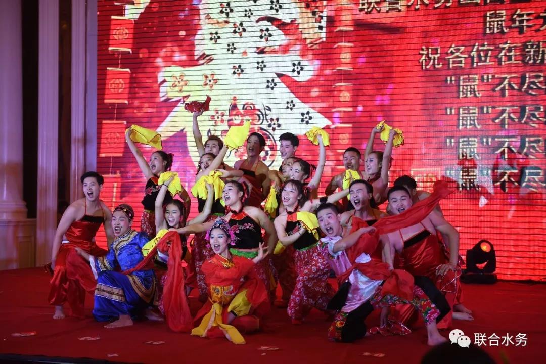 全集團(tuán)2019年度37位先進(jìn)員工上臺(tái)領(lǐng)獎(jiǎng) 晚會(huì)的喜慶氣氛越來(lái)越濃烈,聯(lián)合水務(wù)員工們自編自演了五彩繽紛的文藝節(jié)目,現(xiàn)場(chǎng)仿佛一片歡樂的海洋!爸﹂g新綠一重重,小蕾深藏?cái)?shù)點(diǎn)紅”,微醺拂面人欲醉,點(diǎn)點(diǎn)芳菲春漸濃。由宿遷公司帶來(lái)的大型舞蹈《海棠春色》,好似帶領(lǐng)大家游走在春的繽紛中,優(yōu)美動(dòng)人的舞蹈構(gòu)筑出一幅花光明麗,遠(yuǎn)山近水、鳥語(yǔ)蟬鳴的雅致唯美春色畫卷。山西區(qū)域表演的山西民間舞蹈《醋之韻》,將勞動(dòng)人民在山西地肥水美的好風(fēng)光下,釀醋、戀醋的勞動(dòng)場(chǎng)景演繹的淋漓盡致,讓人迫不及待一品醋之韻味。明日燦爛輝煌依舊守望,今日艱巨的責(zé)任不敢怠慢。伴隨著一陣神秘的音樂,一顆美麗的星球出現(xiàn)在觀眾眼前,音樂漸漸沉重,這顆美麗的星球即將滿目瘡痍,就在所有人都陷入哀痛和沉思之時(shí),畫風(fēng)突變,藍(lán)天白云,河流清澈,鳥飛魚躍,臺(tái)上演員的舞蹈也隨之歡快起來(lái),這是由隨州公司表演的《碧水藍(lán)天》,展示了聯(lián)合水務(wù)千方百計(jì)惜水、愛水、護(hù)水的責(zé)任擔(dān)當(dāng)。歌聲裊裊辭舊歲,舞姿翩翩賀新年。瑞昌公司的節(jié)目《祥瑞昌盛》通過(guò)翻飛的彩扇,跳動(dòng)的舞步,舞出吉祥昌盛的日子;歡快的節(jié)奏,活潑的舞姿,靈動(dòng)的身軀,山西區(qū)域帶來(lái)的《歡歡喜喜過(guò)大年》將現(xiàn)場(chǎng)氣氛再掀高潮;而三門峽公司帶來(lái)的舞蹈《紙扇書生》,將晚會(huì)氣氛帶入只屬于中國(guó)人的風(fēng)趣儒雅,熱情洋溢中;一曲耳熟能詳?shù)摹恫菰脑铝痢奉D時(shí)開啟了北國(guó)風(fēng)光無(wú)限好的境界,悠揚(yáng)的歌聲,婀娜的舞蹈,仿佛帶領(lǐng)大家進(jìn)入到了最美的夢(mèng)鄉(xiāng);若說(shuō)曼妙舞姿已讓全場(chǎng)觀眾沸騰,那由桐鄉(xiāng)公司表演的相聲《長(zhǎng)壽論》,更是讓大家捧腹大笑。 萬(wàn)里之船,成于羅盤。聯(lián)合水務(wù)集團(tuán)的乘風(fēng)破浪、奮勇直前,正是因?yàn)榧瘓F(tuán)領(lǐng)導(dǎo)和員工的同心同德、同甘共苦。由集團(tuán)領(lǐng)導(dǎo)班子帶來(lái)的歌舞串燒《舞林大會(huì)》點(diǎn)燃全場(chǎng),平時(shí)工作中威風(fēng)凜凜的領(lǐng)導(dǎo)班子,突然化身成為優(yōu)雅紳士的舞者,風(fēng)度翩翩;引吭高歌的歌者,熱情高昂,F(xiàn)場(chǎng)觀眾手中揮舞的熒光棒與動(dòng)人的華爾茲融合為一,如夢(mèng)如幻,韻味十足,給觀眾帶來(lái)別翻視覺享受和聽覺享受,贏得現(xiàn)場(chǎng)觀眾的陣陣掌聲和喝彩。