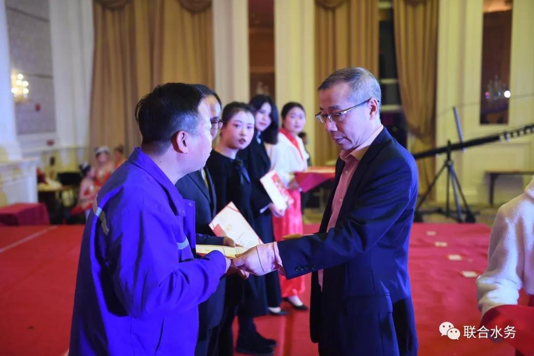 聯(lián)合水務(wù)集團(tuán)高級(jí)副總裁劉猛先生為新春聯(lián)歡會(huì)獲獎(jiǎng)節(jié)目頒獎(jiǎng)